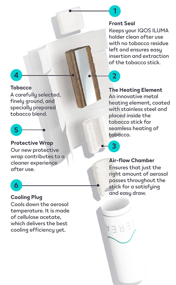 Because TEREA tobacco sticks feature a fully sealed tobacco part they are not compatible with IQOS 3 DUO or any earlier blade generation devices. Using a TEREA stick in a device with blade heating technology may damage the blade.