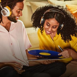 A couple listening to music while using an IQOS device.